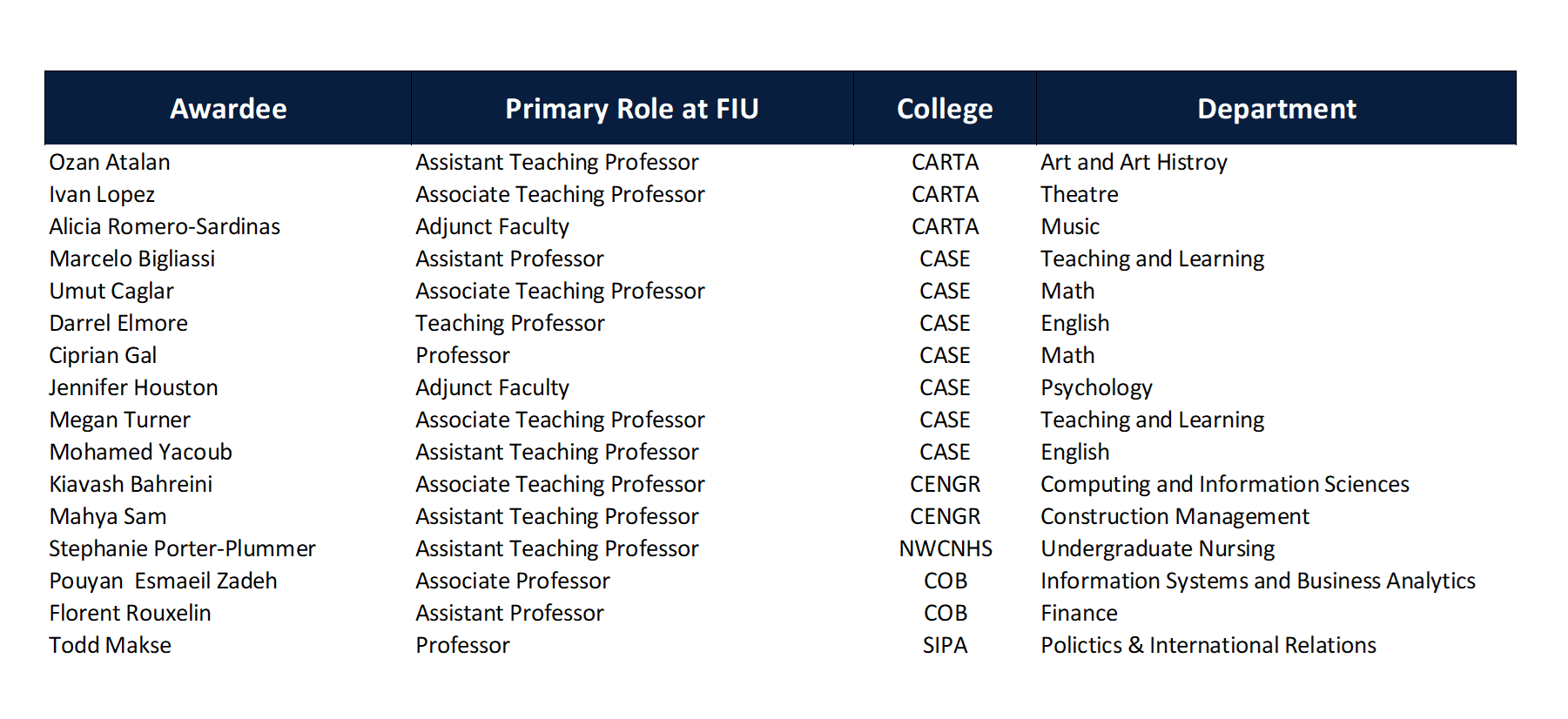 2025 Rewarding Excellence in Teaching Initiative (RETI) Award Winners